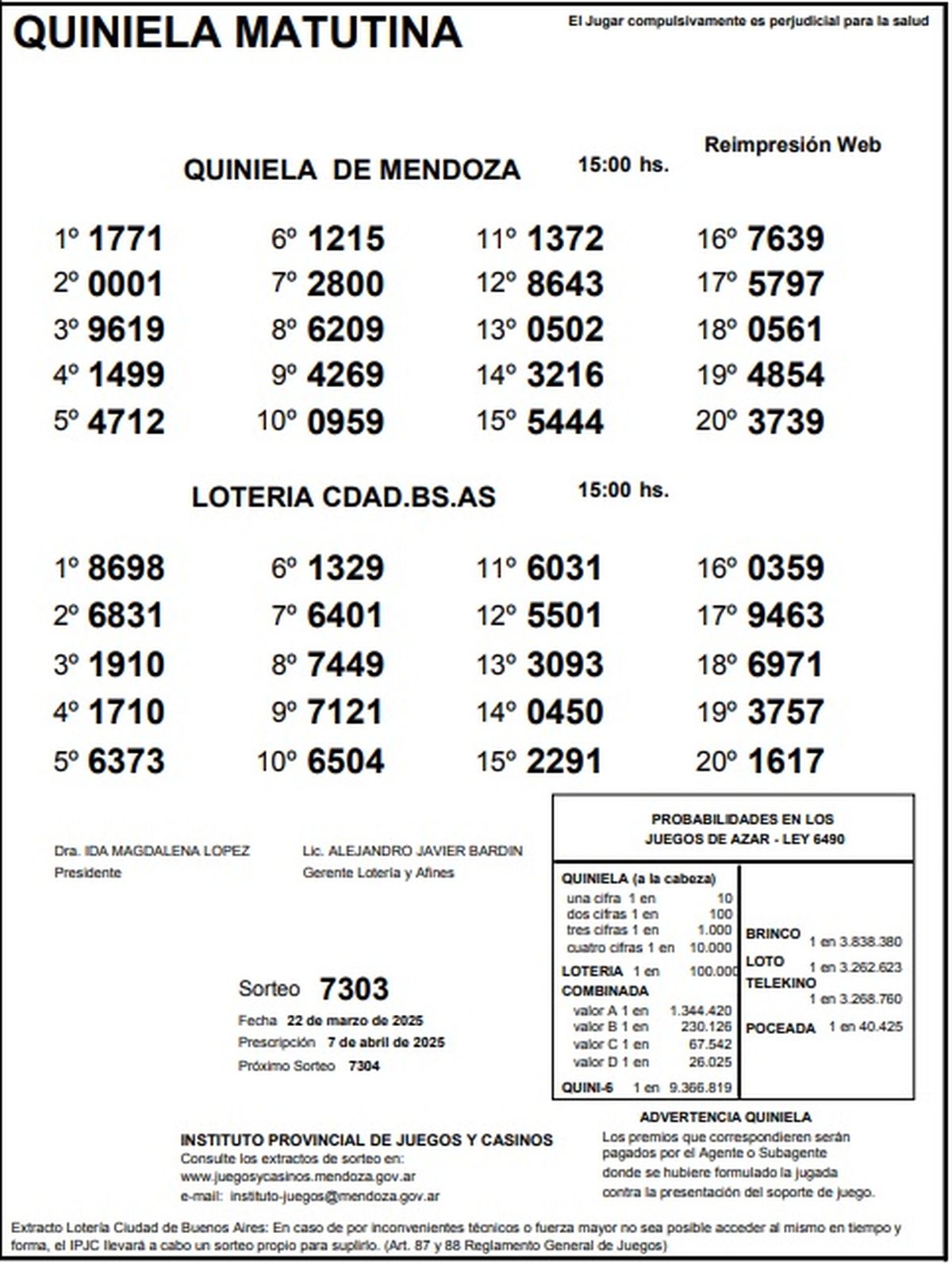 Resultados Quiniela de Mendoza: La Matutina del 22 de marzo de 2025