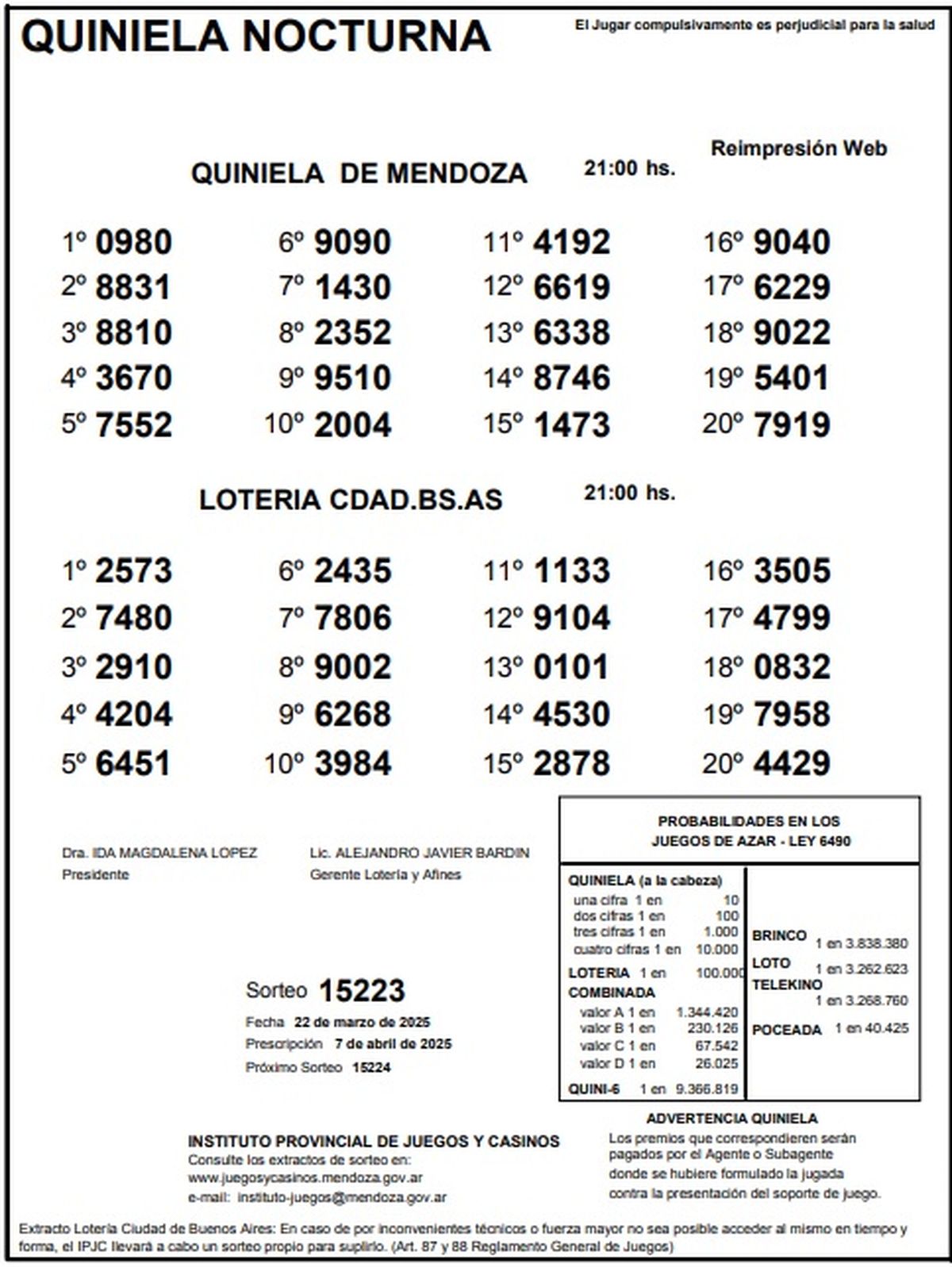 Quiniela de Mendoza: resultados de la Nocturna del sábado, 22 de marzo de 2025
