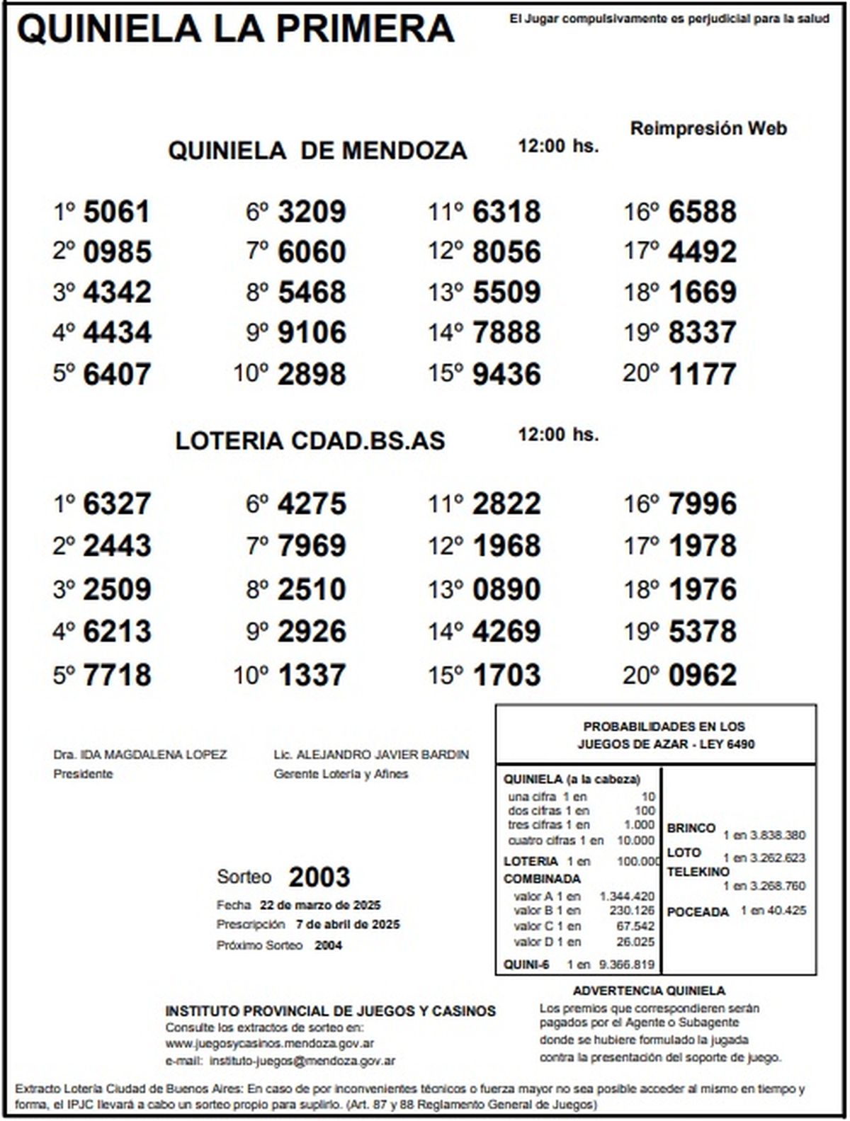 Resultados Quiniela de Mendoza: La Primera del 22 de marzo de 2025