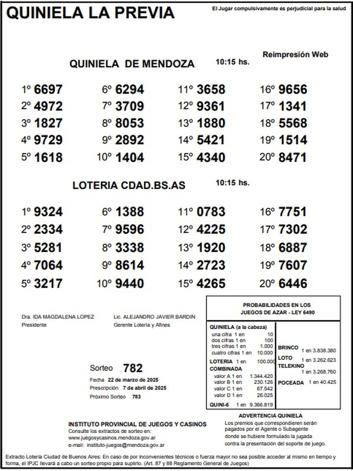 Resultados Quiniela de Mendoza: La Previa del 22 de marzo de 2025