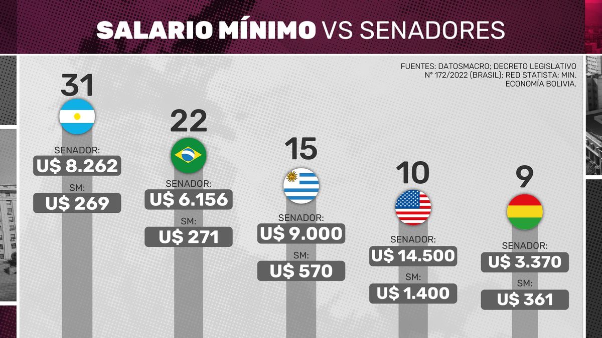 Mirá qué abismal es esta diferencia. Esto es lo que cobran, comparados con salarios mínimos y en dólares, los senadores de otros países.