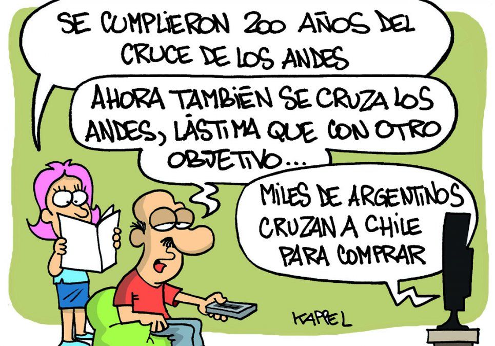 Inicio Información General El humor de Kappel El humor de Kappel 29 de enero de 2017 - 08:29 Igual que hace 200 años pero "un poquito" diferente Por UNO Temas relacionados: El humor de Kappel Humor las más leídas Variación Anticiparon un nuevo aumento de la RTO en Mendoza y el trámite rondará los $60.000 Por Miguel Ángel Flores Justicia Federal La madre de Cristian Guardati, desaparecido hace 34 años, pidió el juicio para 4 ex policías Por José Luis Verderico FÚTBOL INTERNACIONAL Boca lo aguantaba en su visita a Cruzeiro pero se quedó sin nada por el gol de Villarreal sobre el final Por Raúl Adriazola Violento crimen Tragedia en el Rally: piloto asesinado de un disparo en plena competencia Por Luciano Carluccio
