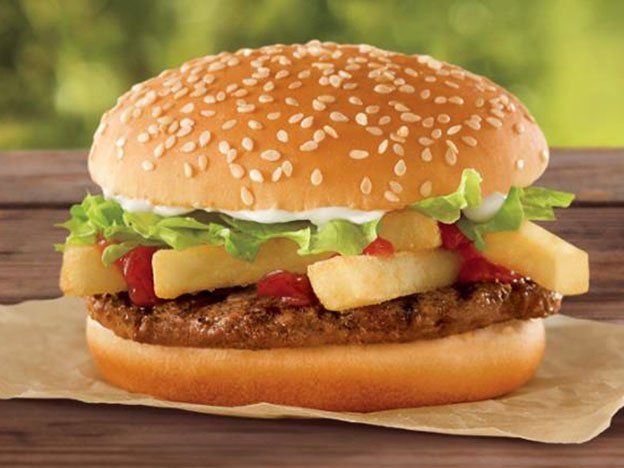 Burger King anunció el próximo lanzamiento de una hamburguesa con papas fritas que costará un dólar y competirá con la campaña de su rival McDonald's de productos con "mini precios". Tendrá básicamente una pieza de carne estándar y cuatro papas fritas.