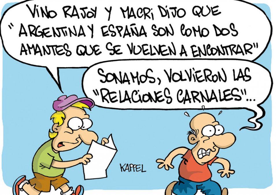 Inicio El humor de Kappel El humor de Kappel. 10 de abril de 2018 - 09:39 ¡Oh, no! Volvieron y no en forma de fichas Por UNO Temas relacionados: El humor de Kappel Humor las más leídas Control de Gendarmería Comercio ilegal y contrabando desde Chile: ya se detectaron 75 casos por $250 millones Por Miguel Ángel Flores Guía escolar Mendoza tiene un nuevo protocolo de seguridad para actuar ante amenazas de tiroteos o bombas Por Rosana Villegas Investigan las causas Tragedia inesperada: se asomó a la ventana de su casa y recibió un disparo fulminante Por Luciano Carluccio Investigación Qué dicen los últimos mensajes que envió el anestesista mendocino muerto por el caso Propofol Por Paola Alé