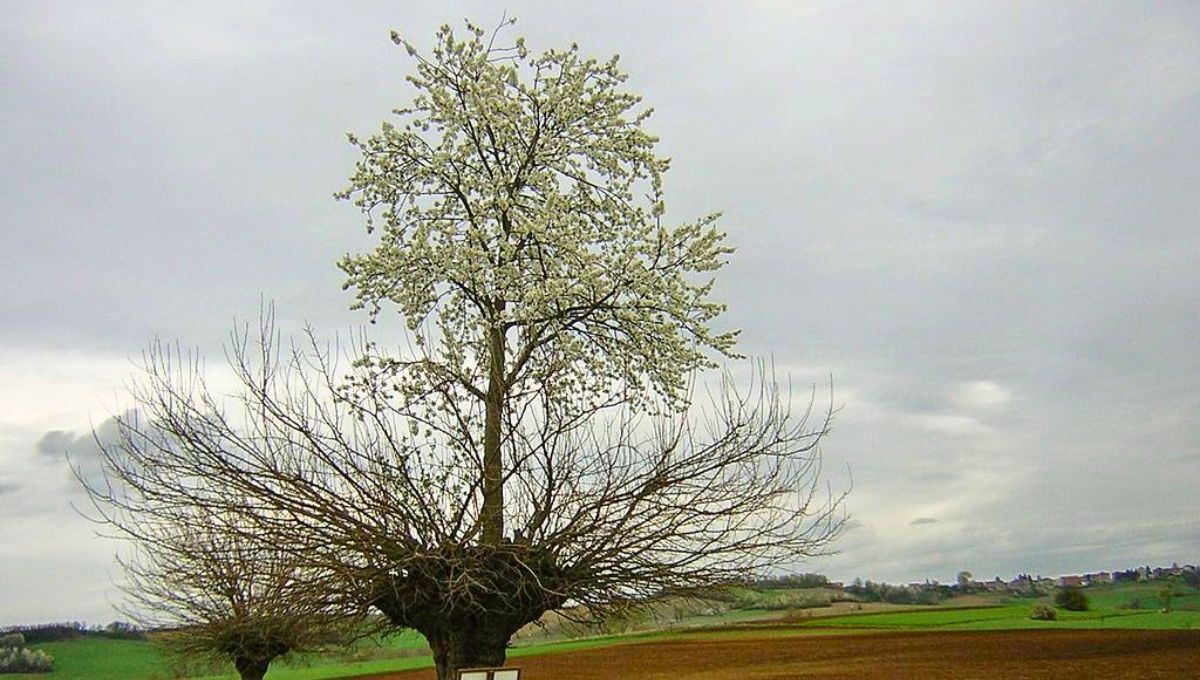 - Atractivo visual: el contraste entre la corteza oscura y robusta de la morera y la copa más ligera y verde del cerezo crea un efecto visual insólito y poético.
