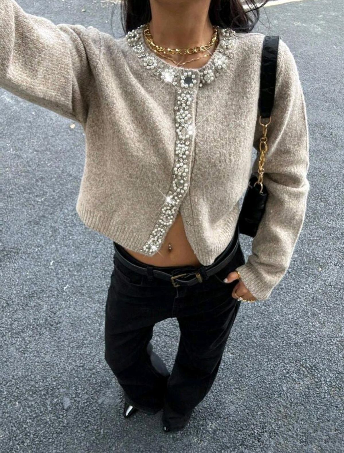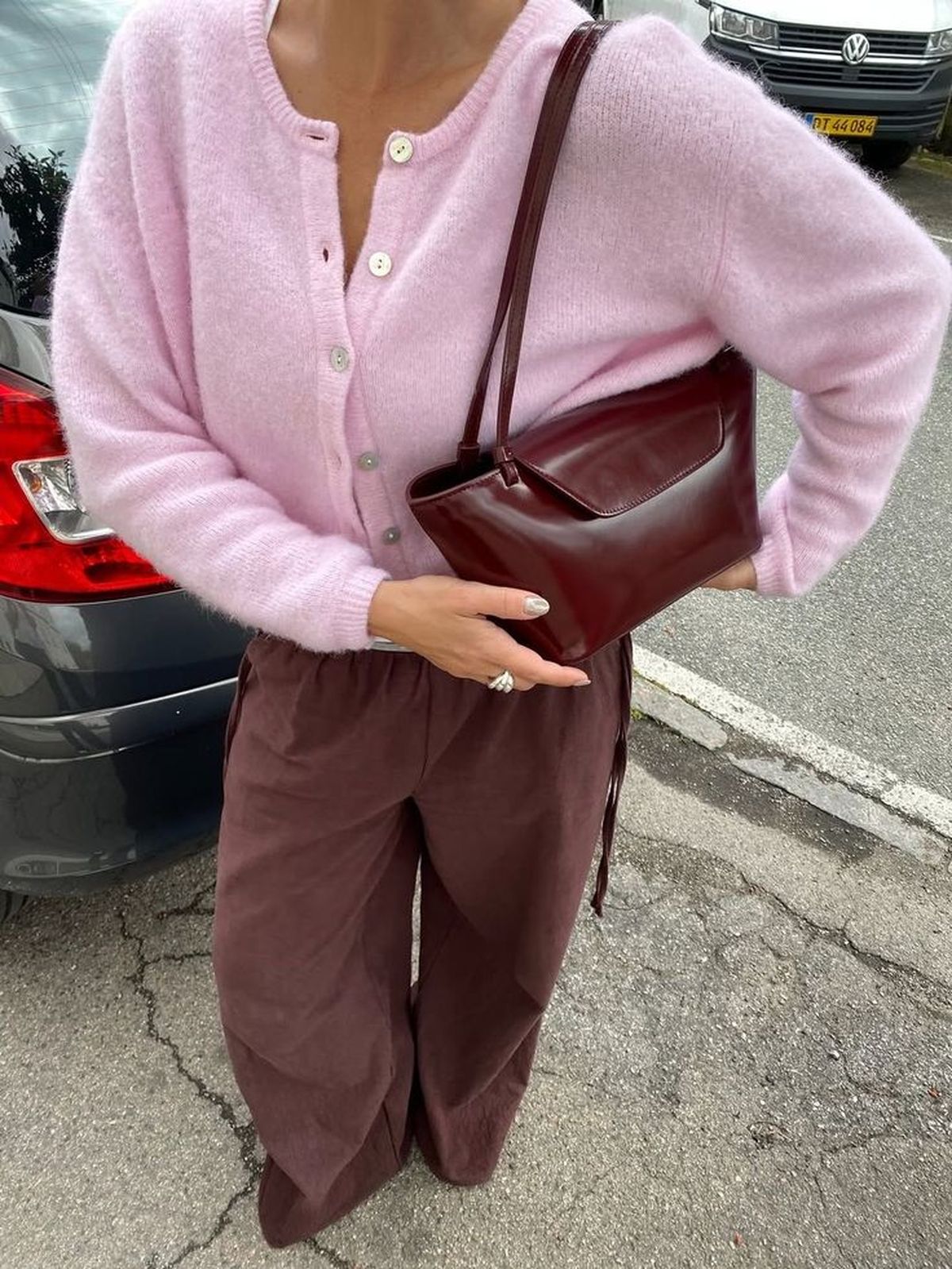 Esta combinación no solo aporta calidez, sino que genera un relieve visual que hace al look con cárdigan mucho más interesante y pulido.
