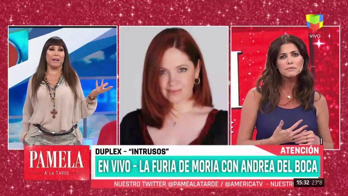 En medio del escándalo, procesamiento e inhibición de bienes que pesa sobre Andrea del Boca por los fondos que recibió del Estado en el Gobierno K para la ficción "Mamá Corazón", Moria Casán mostró su fastidio con la actriz esta tarde en "Intrusos", América.