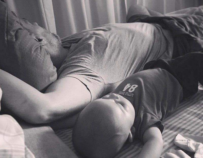 La tierna foto del Chato Prada durmiendo con su hijo Valentín