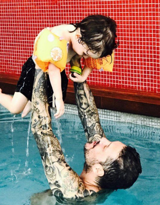 Siguiendo los pasos de su papá, Lolo "tatuó" los brazos y así sorprendió al conductor cuando fue a despertarlo este lunes por la mañana:
