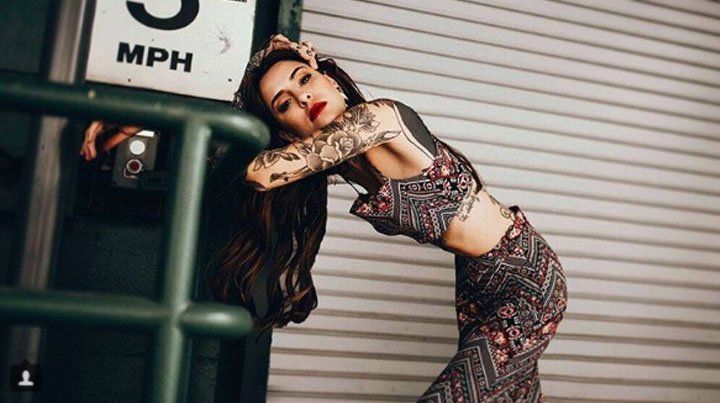 En ella, se puede ver un tatuaje de la morocha con la palabra "amor" y la frase "bebé, creo que me gustas".
