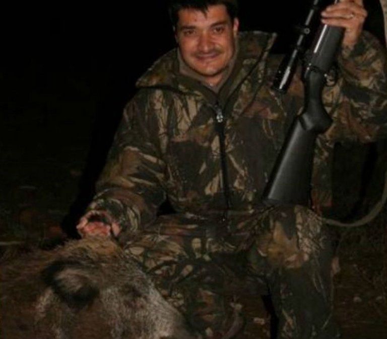 En la imagen de perfil de su WhatsApp el esposo de la artista aparece practicando la caza y sometiendo a un animal con su escopeta en mano.