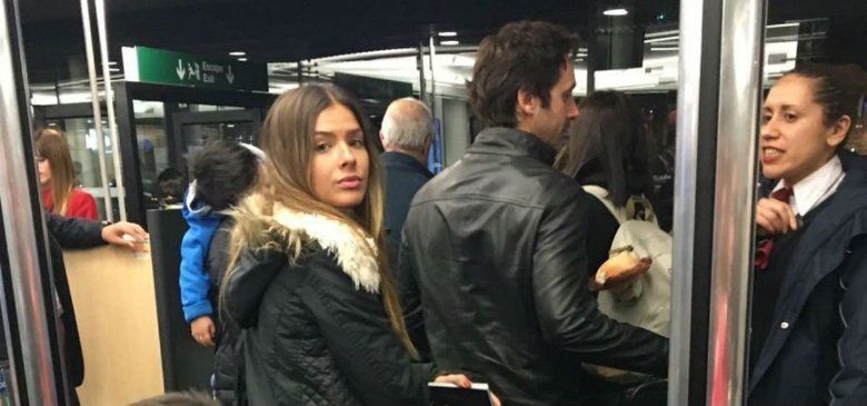 El sitio Primiciasya.com captó el momento en que La China y Vicuña esperaban para presentar su documentación y luego subir al vuelo.