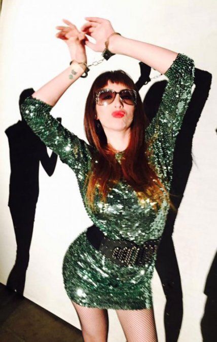 Usando un ajustado vestido de lentejuelas, peluca, gafas oscuras y esposas, Sofía Gala asistió anoche a un baile de disfraces en el barrio de Palermo.