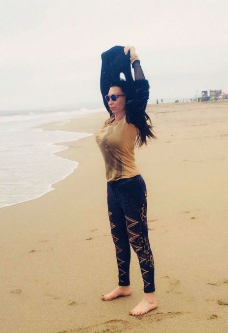 "Tomando energía! Poniéndole el pecho a la temporada. Feliz!", escribió Moria junto a las imágenes en la playa de La Feliz, tras realizar las funciones de su stand up.