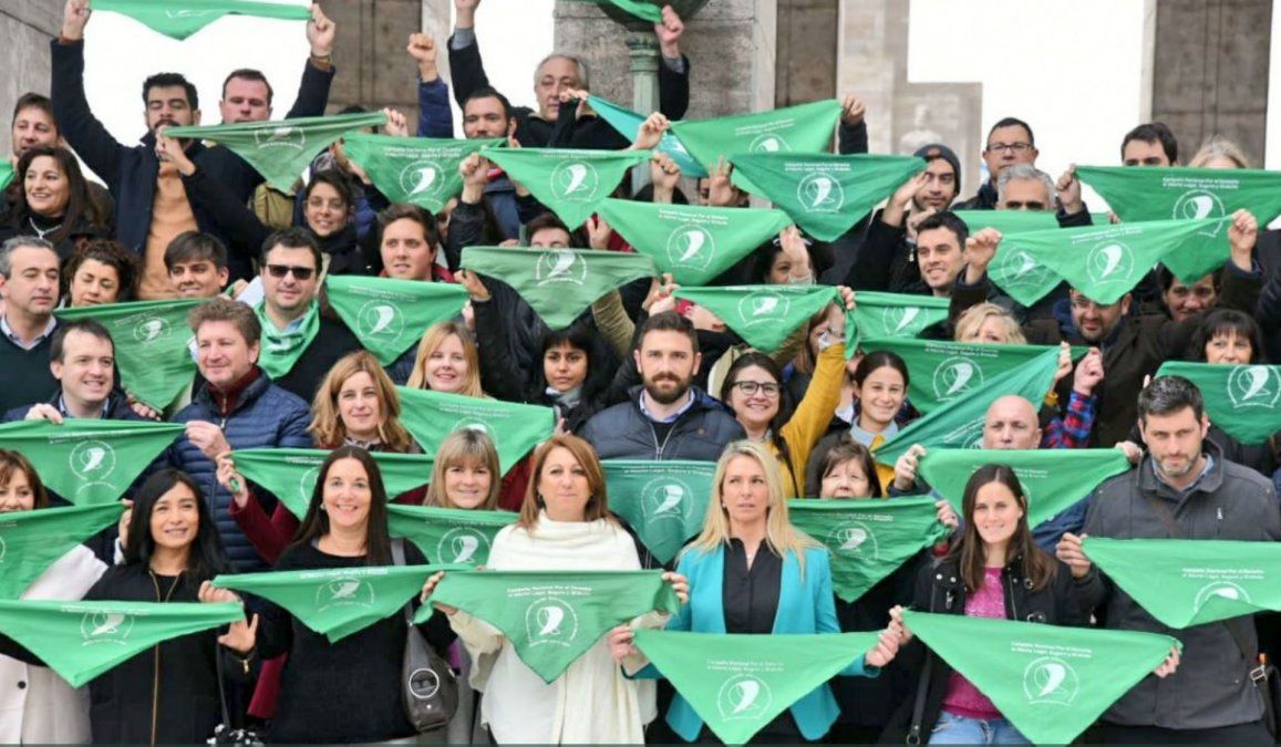 Encabezado por la intendenta Mónica Fein, el Frente Progresista Cívico y Social realizó un pañuelazo en las escalinatas del Monumento a la Bandera para apoyar el proyecto de interrupción voluntaria del embarazo, que mañana se votará en el Senado de la Nación.