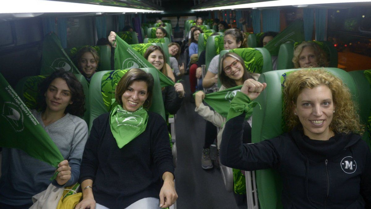 Una treintena de colectivos, repletos en su mayoría de mujeres con pañuelos verdes, concentraron desde muy temprano en Oroño y 27 de Febrero rumbo a la plaza del Congreso, para sumarse a la masiva concentración que se espera en Bueno Aires para pedir que se sancione la ley de aborto.