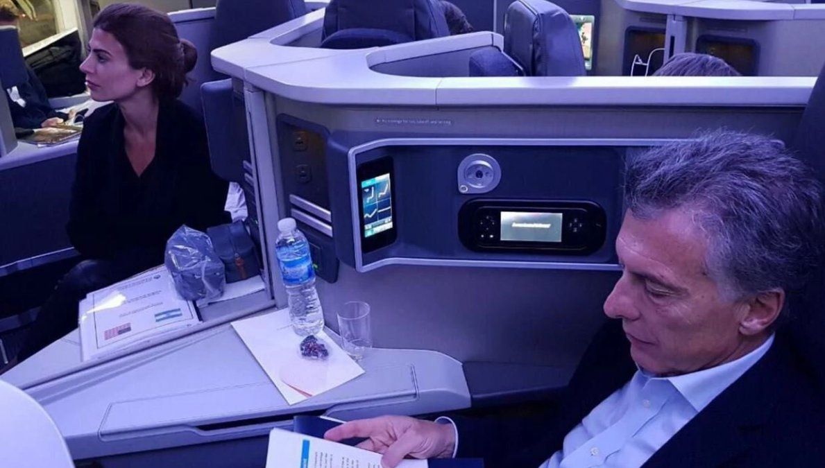 El mandatario partió en un vuelo de American Airlines junto a la primera dama Juliana Awada, el cancller Jorge Faurie, el ministro de Finanzas, Luis Caputo, los gobernadores de Entre Ríos, Gustavo Bordet; de Santa Fe, Miguel Lifschitz, y de Córdoba, Juan Schiaretti, y el titular provisional del Senado, Federico Pinedo.