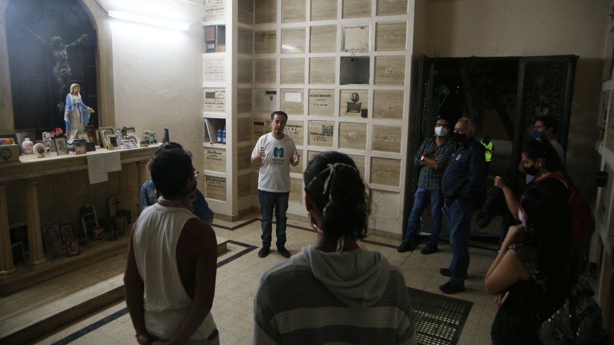 Todos los martes, numerosos grupos de visitantes se reúnen en la entrada de la necrópolis capitalina, mirando de reojo los largos y oscuros pasillos que van hacia el Oeste, tratando de sacar de la mente las imágenes alegóricas de películas u obras literarias de terror. Allí espera el joven guía, Jesús Morales, investigador histórico y que cursa la licenciatura en Historia Regional en la UNCuyo, y que con mordaz humor juega con su nombre: "Jesús los espera en la puerta del Cementerio". Luego explica la costumbre de cómo se recibe a cada cortejo fúnebre que ingresa, y lo repite para iniciar el paseo, tocando tres veces la campana, poniendo un certero toque lúgubre.
