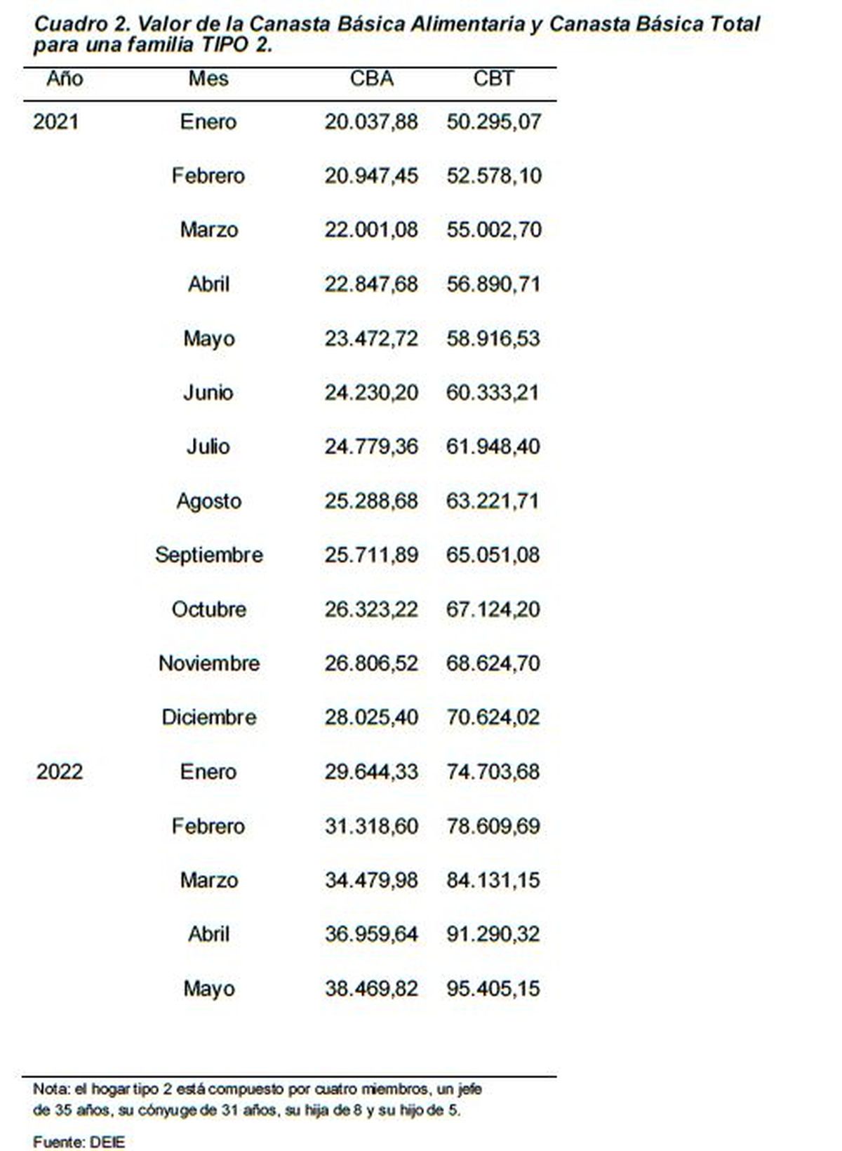 La Canasta Básica Total (CBT) y la Canasta Básica Alimentaria (CBA) son las que muestran los índices de pobreza e indigencia y el dato quizás más preocupante es el aumento registrado en un año, entre mayo de 2021 y mayo de 2022 con valores que se aproximan al 100%.