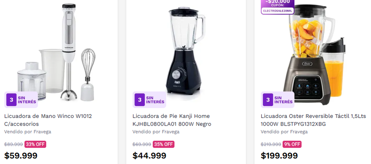 Las licuadoras en Falabella de Chile cuestan en promedio $30.000 argentinos.