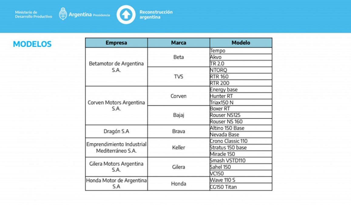 El financiamiento estará disponible para 40 modelos de las marcas Mondial, Kymco, Motomel, Keeway, Benelli, Guerrero, Okinoi y Zanella, que representan el 59% del mercado, se indicó.