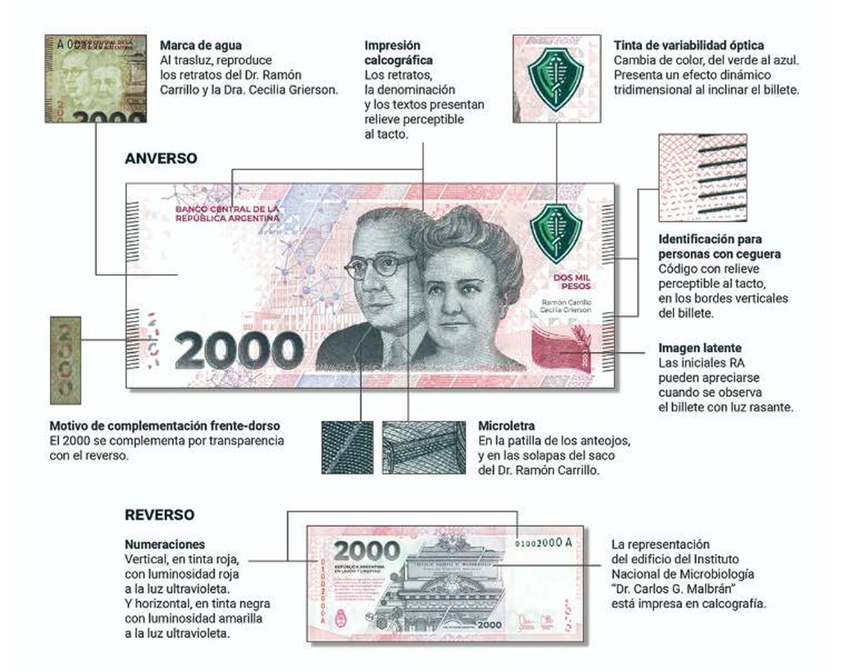 Igualmente, desde el Banco Central señalaron que ambos billetes de $ 2.000 van a coexistir como de circulación legal, siendo el ejemplar de mayor valor en Argentina.
