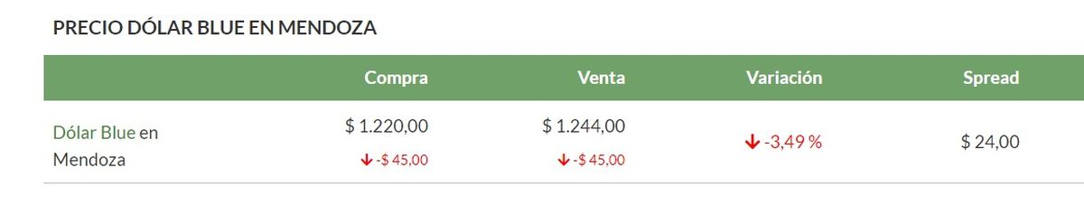 En la plaza mendocina, en tanto, la divisa norteamericana se negociaba pasado el mediodía a $ 1.220 para la compra y $ 1.244 para la venta, aunque debido a la dinámica del día puede haber pequeños ajustes.