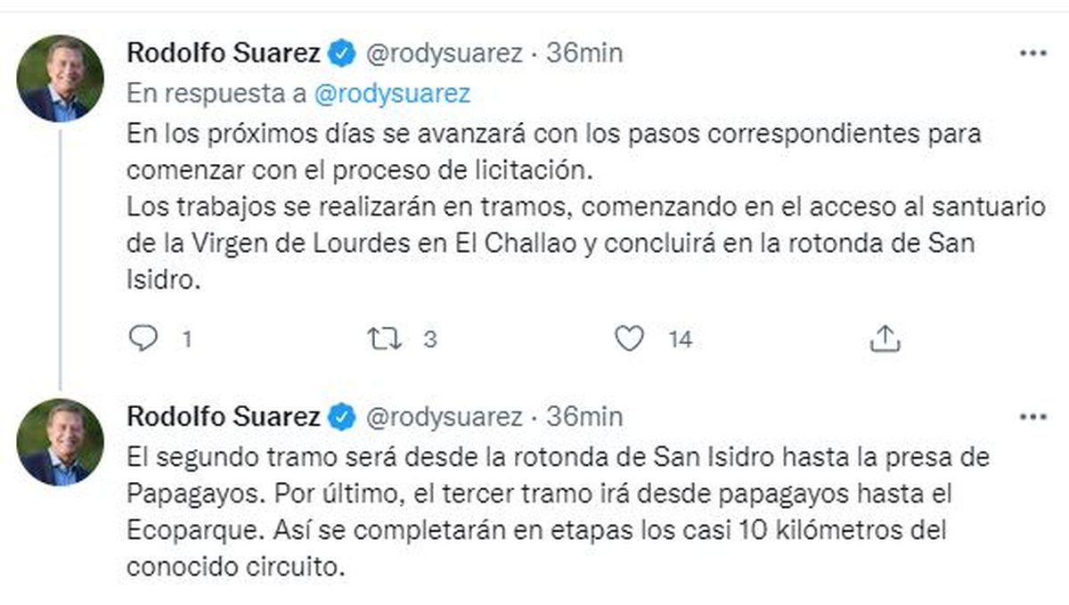 El gobernador Rodolfo Suarez confirmó este viernes que la Provincia tiene la autorización para avanzar con el llamado a licitación de las obras de reconstrucción y puesta en valor de la Ruta Provincial 99, conocida como circuito Papagayos. A mediados de abril se había firmado el convenio con la Nación por $1.015 millones.