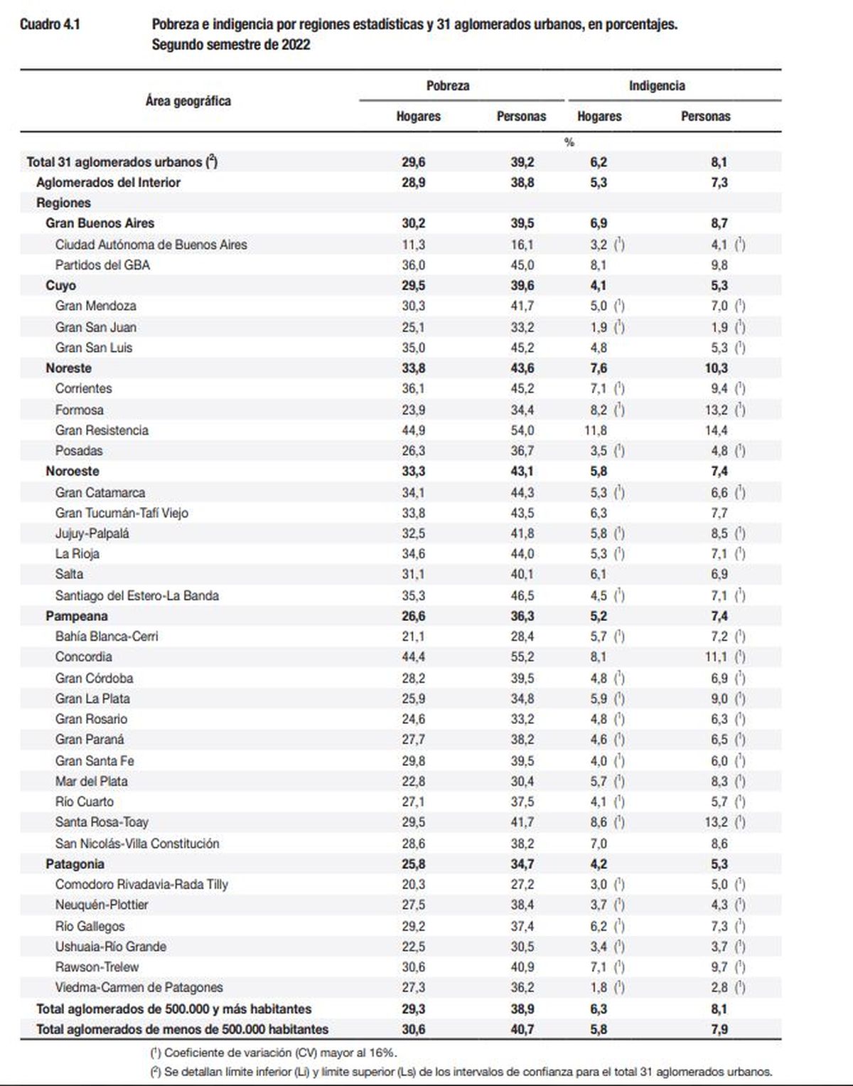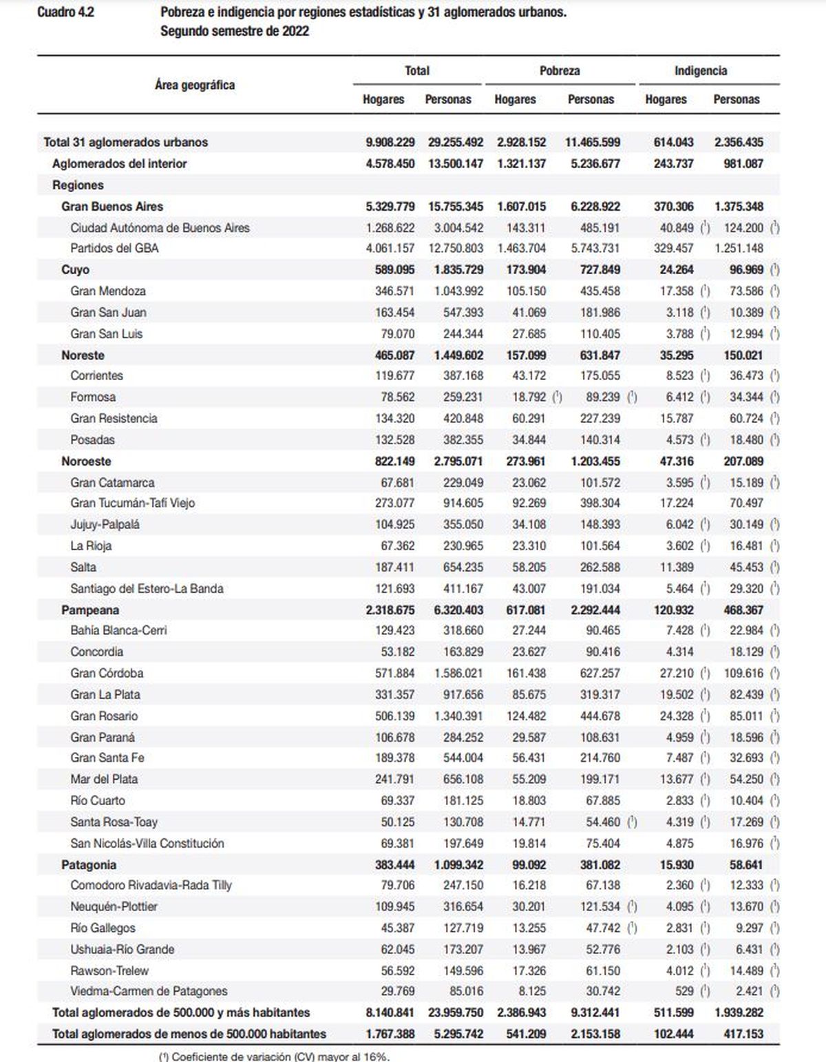 En los siguientes cuadros se muestran números y porcentajes oficiales dados a conocer por el INDEC.
