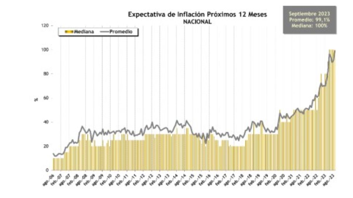 En el mismo sondeo, la ciudadanía dijo creer que en los próximos doce meses los precios subirán 99,1%, o sea que se duplicarán.
