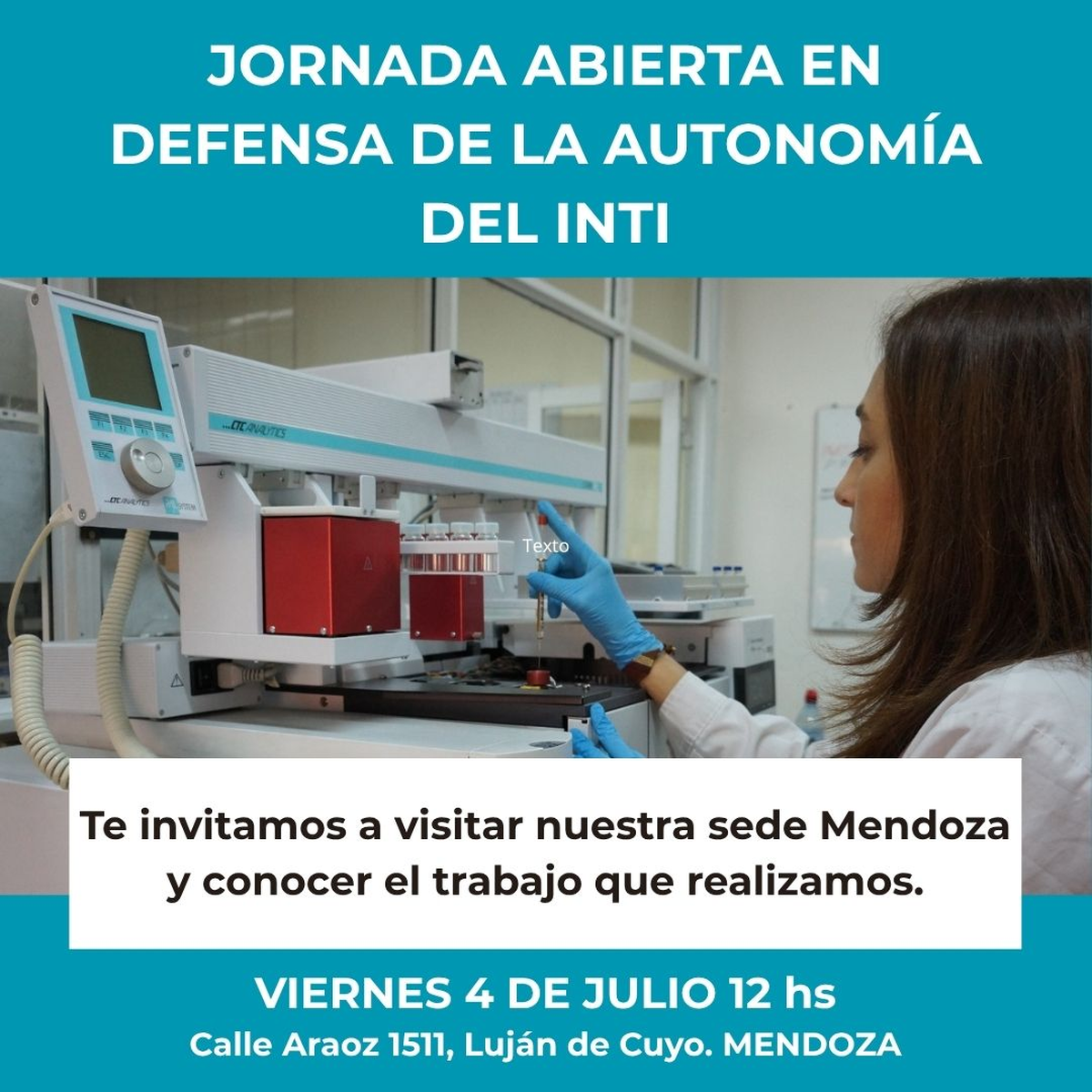 Incluido en un plan de ajuste junto al INTA que genera incertidumbre, el INTI decidió abrir sus puertas el viernes 4 de julio para mostrar a la comunidad cómo trabaja en Mendoza. Y al mismo tiempo, convocó a una protesta singular: un "abrazo" simbólico para visibilizar el apoyo al organismo.
