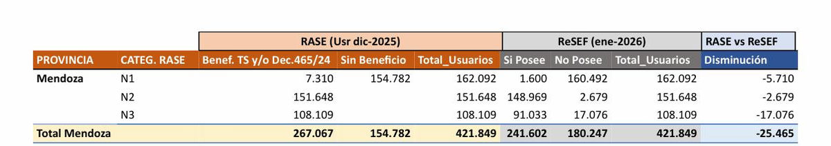 La estadística de la secretaría de Energía respecto del estado de situación en Mendoza mostró que la mayor parte de quienes perdieron el beneficio eran ex clientes del nivel N-3. Es decir, quienes acreditaban ingresos medios (no superiores a los 3 salarios mínimos), y en menor medida, los de ingresos altos y mayor patrimonio (más de 2 vehículos de menos de 5 años de antigüedad y 2 o más propiedades).