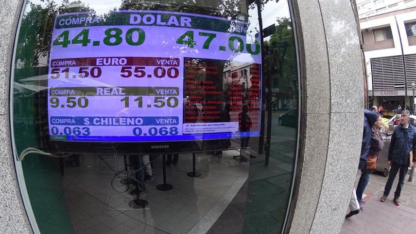 Una de ellas, Maguitur, mostraba en su pizarra $44,80 para la compra y $47 para la venta en la última hora de actividad, mientras que a escasos metros, Cambio Santiago, cotizaba el dólar a $45 para la compra y $47 para la venta.