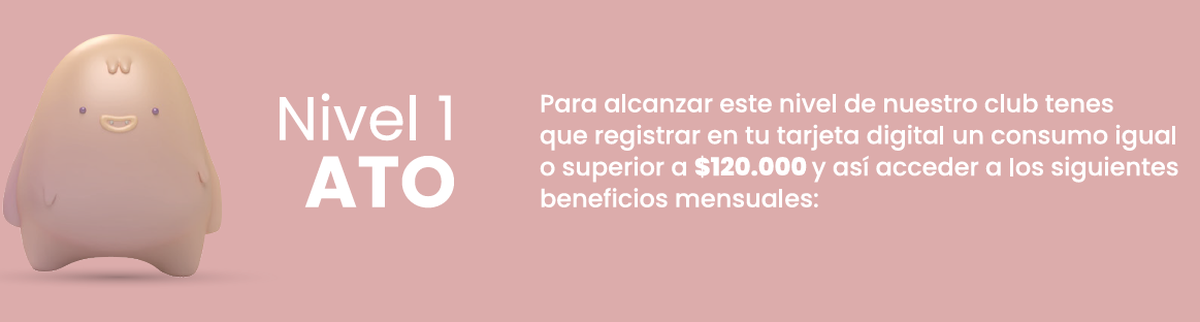 Para alcanzar este nivel hay que haber estado antes en el nivel ATO y registrar en la tarjeta digital un consumo igual o superior a $140.000.