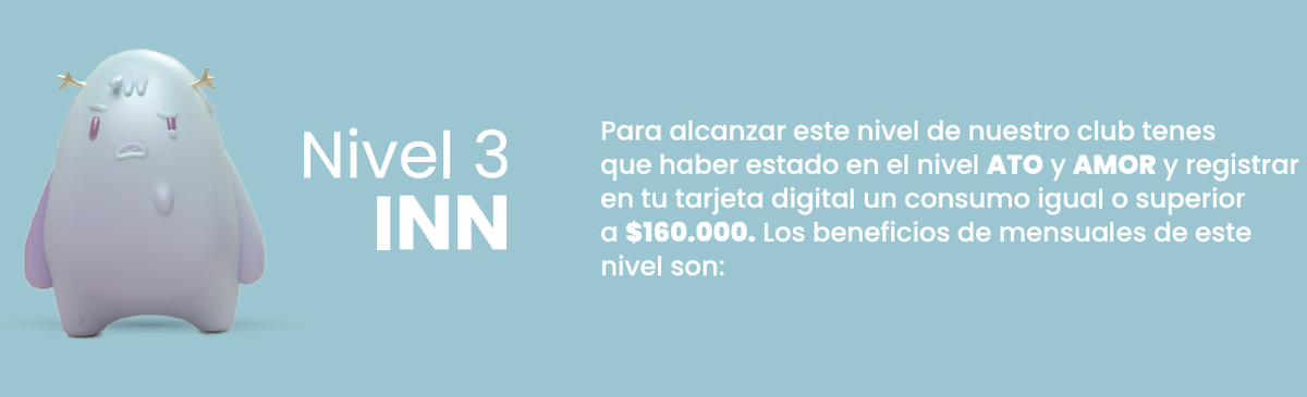 Para alcanzar este nivel de nuestro club tenés que haber estado en el nivel ATO y AMOR y registrar un consumo igual o superior a $160.000 o más en la tarjeta digital