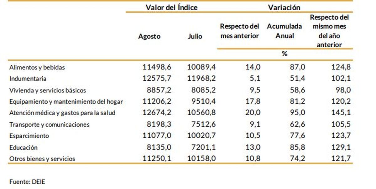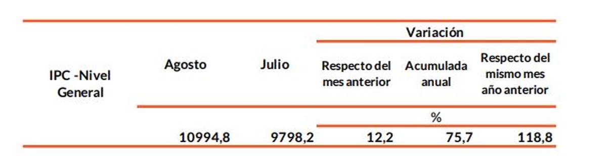 Respecto de agosto de 2022, el incremento del costo de vida llegó al 118,8%.