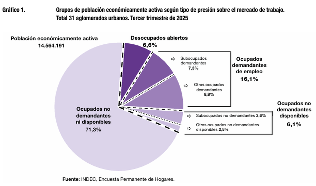 Mientras en 2024 representaban un 73,1% de los ocupados, el último registro del INDEC reflejó un 71,9%.