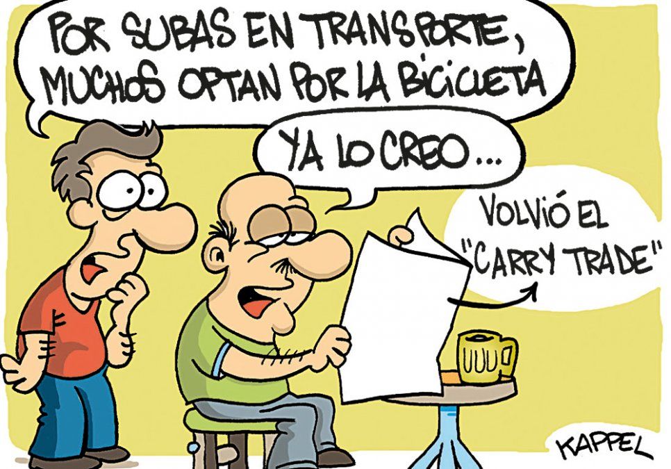 Inicio Economía El humor de Kappel El humor de Kappel. 22 de octubre de 2018 - 06:46 La vuelta de la "bicicleta"... financiera Por UNO Temas relacionados: El humor de Kappel Humor las más leídas Mundo Diego, la tortuga que ayudó a salvar a su especie: pasó de 15 ejemplares a más de 800 crías Por Valentina Araya ¿La sabes? Cuál es la diferencia entre una bicisenda y una ciclovía Por Daniel Calivares Estados Unidos Quién es el hombre que inició el tiroteo en la cena de periodistas a la que asistió Donald Trump Por Paula Alonso Telekino Telekino: resultados del sorteo 2425 del domingo 26 de abril Por Paula Alonso Lo que se lee ahora Economía El Banco Nación cambió el plazo fijo: cuánto gano con $1.000.000 en 30, 60 y 90 días Te puede interesar Inversiones El Banco Nación cambió el plazo fijo: cuánto gano con $1.000.000 en 30, 60 y 90 días Mercado inmobiliario Mendoza lanzó un observatorio para saber si conviene alquilar o comprar propiedades Inversiones Confirmado el precio del dólar este lunes 27 de abril cuando abran los bancos