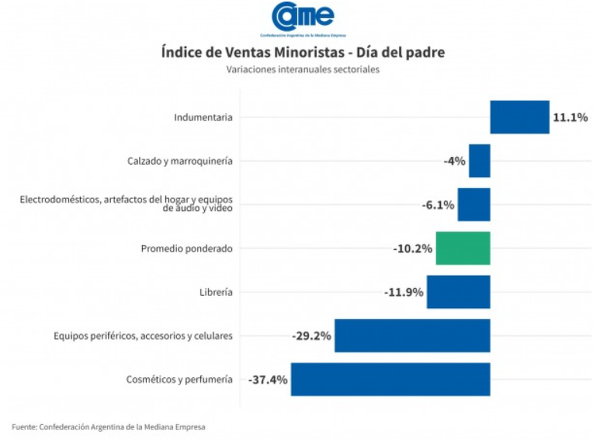 Las ventas por el Día del Padre cayeron 10,2% frente al año pasado, según datos de la CAME
