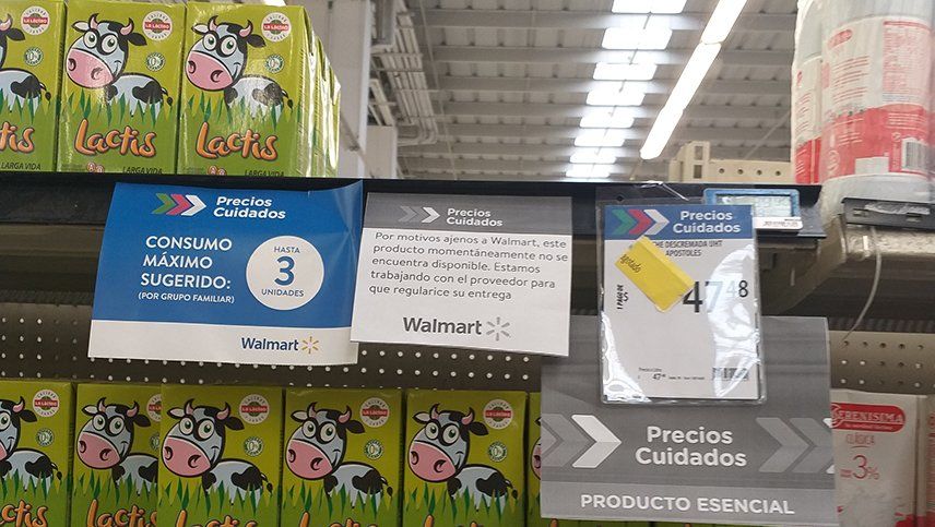 Mientras que, en el Wal Mart de Dorrego, se pudo observar alrededor de 15 productos de precios esenciales disponibles. También se notaron seis artículos marcados como esenciales pero sin stock. En algunos casos señalaban "Faltante autorizado" o simplemente aparecía la góndola vacía.