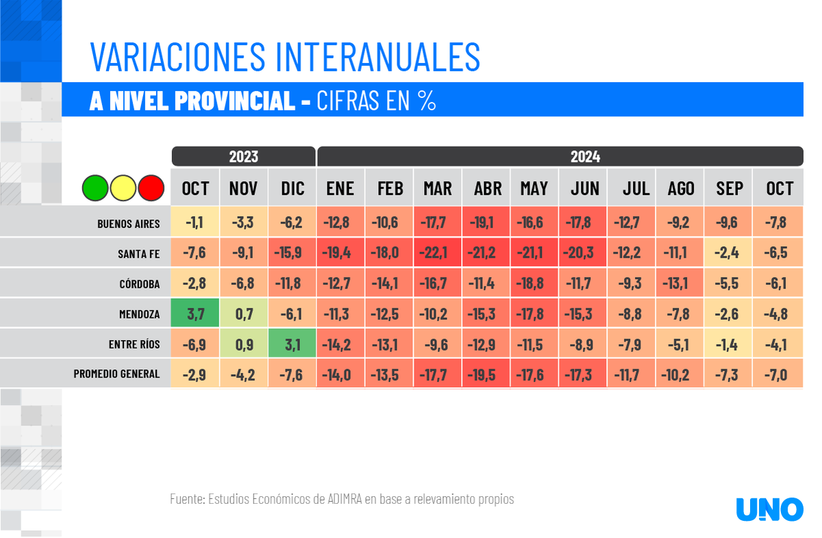 En tanto que en Mendoza, se registra una de la dos caídas menos intensas (-4,8), junto a la de Entre Ríos (-4,1%).