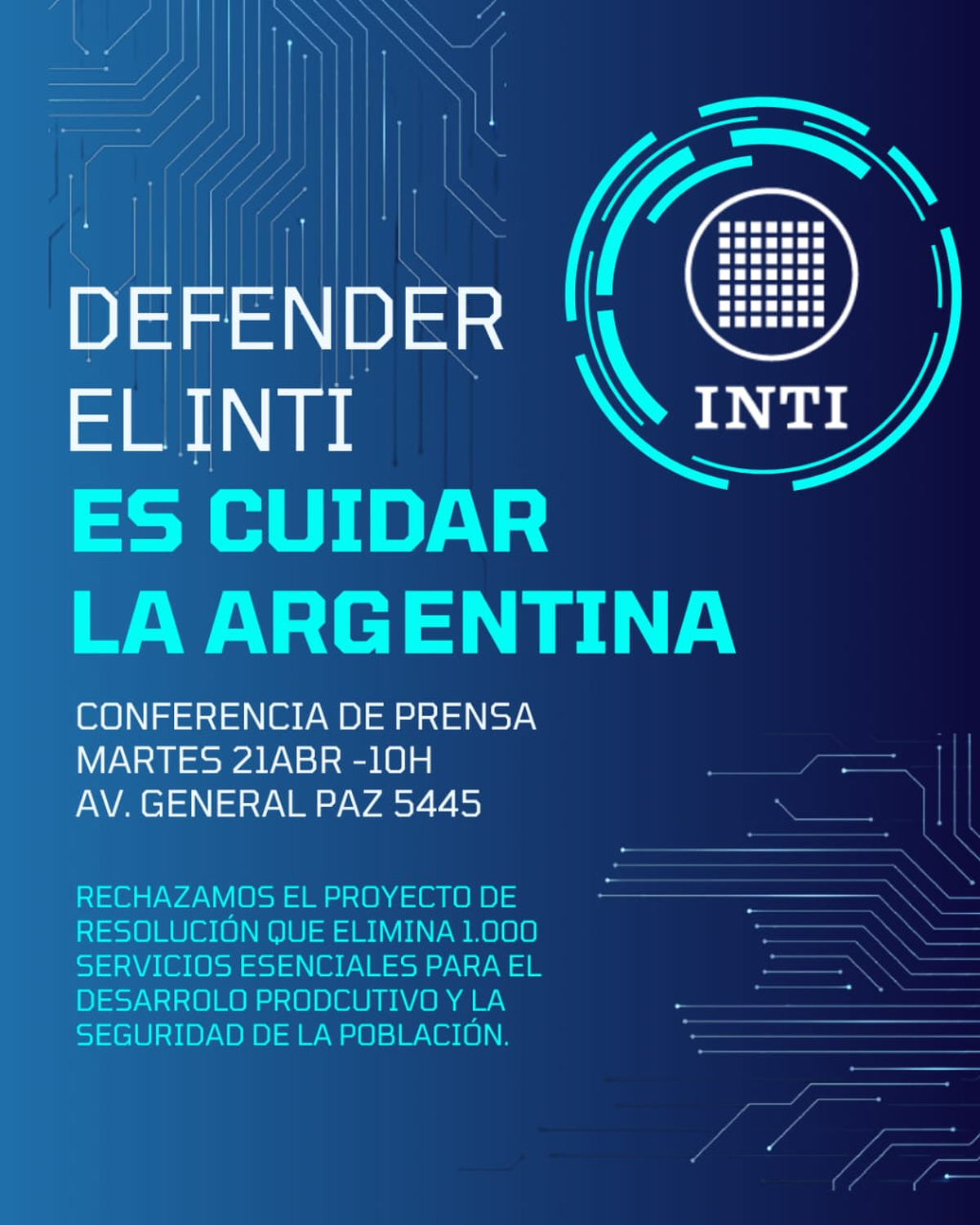 Por lo pronto, este martes a la mañana representantes y trabajadores del INTI, que en 2027 cumplirá 70 años de existencia, se manifestarán sobre el tenor de las medidas que adoptó el gobierno nacional a través de Sturzenegger.