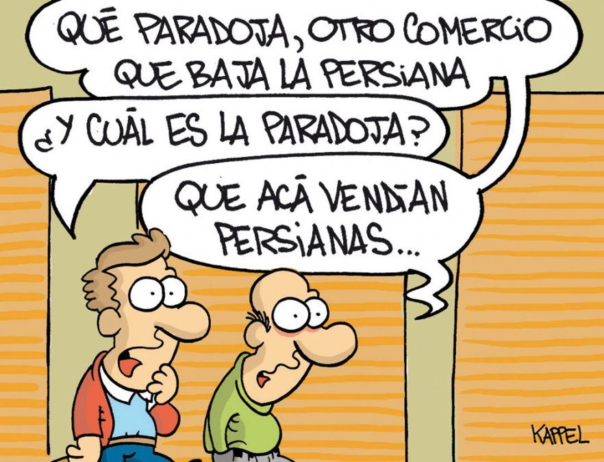 Inicio Economía El humor de Kappel El humor de Kappel. 01 de septiembre de 2016 - 07:45 ¡Qué paradoja, qué paradoja! Por UNO Temas relacionados: El humor de Kappel Humor las más leídas Pago duplicado Por un error del Banco Nación miles de docentes y celadores cobraron doble el bono de útiles Por Rosana Villegas EN VIVO Manuel Adorni: "Todos los ciudadanos son inocentes hasta que la Justicia demuestre lo contrario" Por Luciano Bertolotti Tragedia Hallaron a un hombre muerto dentro de una acequia en Las Heras e investigan las circunstancias Por Redacción de UNO Violencia Dos chicas se agarraron a piñas a la salida de la escuela y todo quedó filmado Por Pablo Abihaggle Lo que se lee ahora Economía Bajó el dólar: los bancos se apuraron y confirmaron su precio para este jueves 30 de abril Te puede interesar Inversiones Plazo fijo en dólares: cuánto ofrece cada banco por invertir tus ahorros Mercado cambiario El dólar oficial y el blue cerraron en baja y coincidieron por segunda vez este año Inversiones Bajó el dólar: los bancos se apuraron y confirmaron su precio para este jueves 30 de abril
