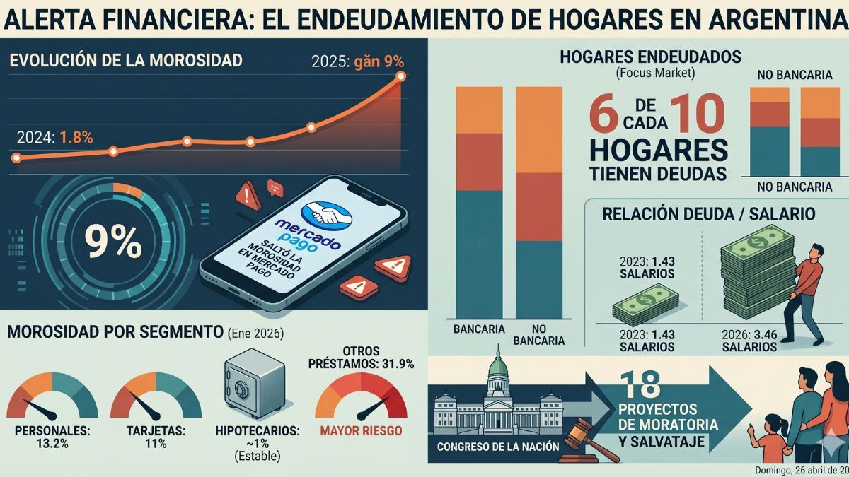 Ante este escenario de "sobreendeudamiento familiar", en el Congreso de la Nación ya se analizan unos 18 proyectos de ley que proponen esquemas de moratoria y salvataje. Las iniciativas buscan suspender embargos, congelar intereses punitorios y evitar que las familias caigan en una muerte civil financiera que les impida reinsertarse en el sistema formal.