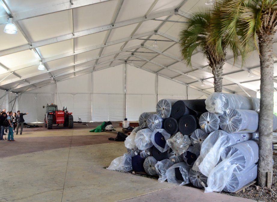Calderón mostró las instalaciones del Arena, que poco a poco comienzan a cambiar su fisonomía. Allí habrá 4 áreas de exposición cubiertas, dos de las cuales son grandes carpas de hasta 5 metros de alto, y otras tres descubiertas, con el stadium incluido durante los tres días que dure la exposición.