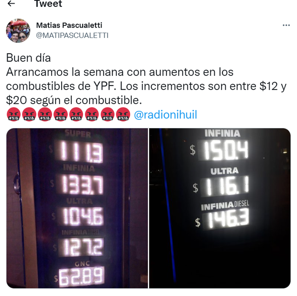 Es el tercer incremento del año en los combustibles para ambas petroleras. A diferencia de los aumentos anteriores y del comportamiento que se da habitualmente, en este caso YPF no encabezó la actualización en las pizarras, sino que por el momento la empresa estatal no tiene decidido ajustar sus valores.