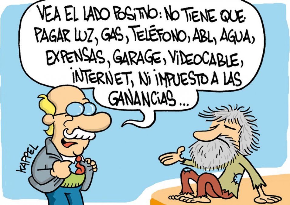 Inicio Economía El humor de Kappel El humor de Kappel. 25 de septiembre de 2017 - 09:58 Un impuestito más, un impuestito más... Por UNO Temas relacionados: El humor de Kappel Humor las más leídas Alerta Sofía Se perdió una niña de 4 años y activaron el Alerta Sofía Por Pablo González Proyecto de ley Quiénes son los dueños de las 90 hectáreas que buscan expropiar para el polo logístico de la Ruta 7 Por Analía Doña Control de Gendarmería Comercio ilegal y contrabando desde Chile: ya se detectaron 75 casos por $250 millones Por Miguel Ángel Flores Investigan las causas Tragedia inesperada: se asomó a la ventana de su casa y recibió un disparo fulminante Por Luciano Carluccio Lo que se lee ahora Economía Comercio ilegal y contrabando desde Chile: ya se detectaron 75 casos por $250 millones Te puede interesar Asfixia del poder adquisitivo Seis de cada 10 hogares tienen deudas y la morosidad en billeteras virtuales se dispara Control de Gendarmería Comercio ilegal y contrabando desde Chile: ya se detectaron 75 casos por $250 millones Inversiones Nuevo cambio en el plazo fijo: Cuánto se puede ganar con $8.000.000 en 30 días