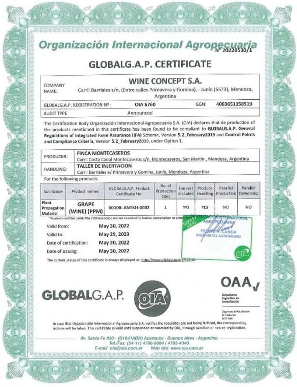 "Hoy en Vivero San Nicolás Vid estamos orgullosos de poder comentarles que hemos aprobado la auditoría de Certificación de Buenas Prácticas Agrícolas correspondiente a Global G.A.P.", explicó el Ingeniero Agrónomo Fernando López, socio fundador de Vivero San Nicolás Vid, . Y agregó: "Estamos en un proceso de mejoras y desarrollos continuos para aplicar prácticas agrícolas seguras, responsables y sustentables que nos permitan cuidar la calidad de nuestro proceso ofreciendo al mercado la más alta calidad de plantas de vid. Gracias por acompañarnos y seguir confiando en nosotros".