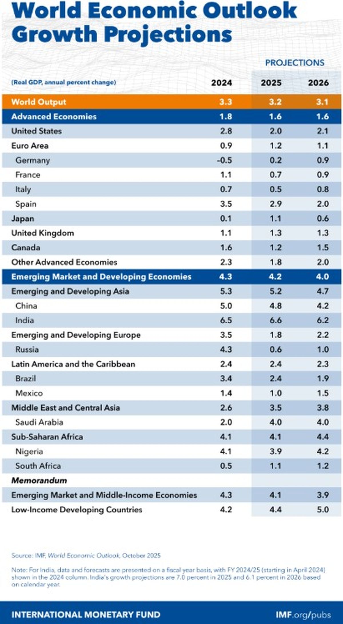 En cuanto a las perspectivas compartidas para la Argentina en 2026, el organismo espera que siga el crecimiento de la actividad, al estimar un avance del 4%, medio punto porcentual menos de la proyección previa y que se profundice la desaceleración de la variación de precios, previendo un alza del 16,4%, dos puntos porcentuales más que el reporte pasado.