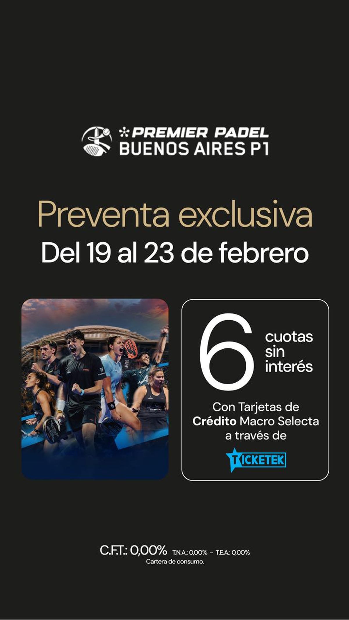 Banco Macro ofrece preventa exclusiva de entradas para el Premier Pádel P1 con hasta 6 cuotas sin interés para sus clientes
